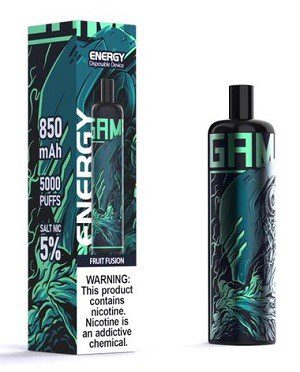 Energy Disposable Pen by KK, features a 850mAh battery capable of fast charging very rapidly via USB-Type C port. The Energy Disposable also has adjustable airflow (valve located on the bottom), a 1.2 ohm Mesh coil, 50mg Salt Nic and huge 12ml capacity.