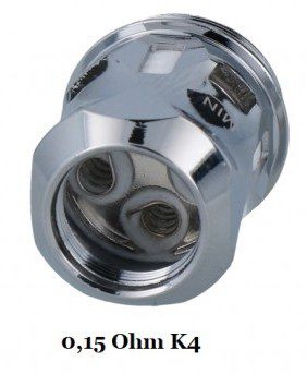 The V2 K1 has four heating coils in parallel with good airflow, a more stable heating coil with excellent wicking capability. A denser cloud and purer flavour. Best at 90-120w – 0.2ohm quadruple mesh coil.