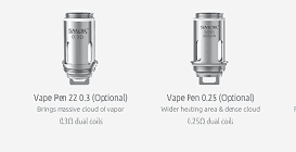 Smok Vape Pen 22 & V2 Replacement Coils utilise the new coil system that caters specifically for the Vape Pen 22 & V2 Starter Kits. Quad wicking ports also ensure rapid and consistent wicking for great flavour-orientated delivery.