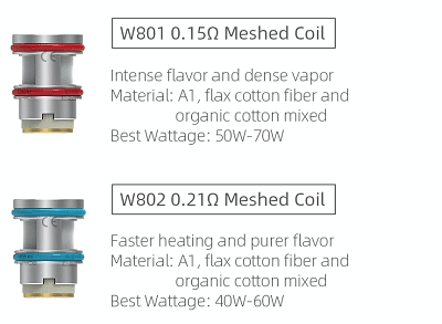 - 0.21ohm W802 Mesh Coil – rated 40-60W